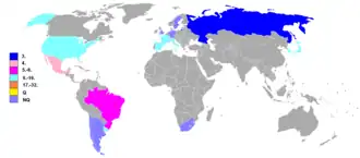 - Ohne Qualifikation teilgenommen: 1 × (5 %; 1930)
