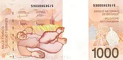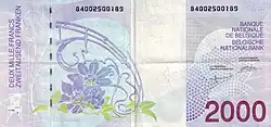 1999 wurde der belgische Franken zum Kurs 40,3399:1 durch den Euro ersetzt. Zunächst wurde der Euro lediglich als Buchgeld, 2002 auch als Bargeld eingeführt. Alle Banknoten, die seit 1944 ausgegeben wurden, bleiben umtauschbar.[3]