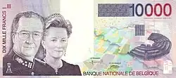 - ↑ Umtausch BEF und Darstellung der betreffenden Scheine auf nbb.be Abgerufen am 13. August 2022, (niederländisch).