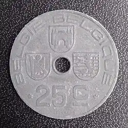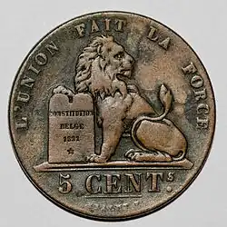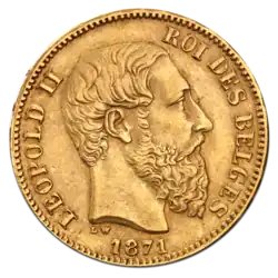 Bereits vor der Gründung des Staates Belgien im Jahr 1830 wurden in Brüssel zwischen 1814 und 1830 niederländische Münzen geprägt, die das Münzzeichen B trugen. Belgische Münzen wurde erst ab 1832 geprägt. Das belgische Münzsystem wurde nach dem Vorbild des französischen Münzsystems geschaffen. 100 Centimes entsprachen 1 Franken oder auf flämisch 100 Centiemen entsprachen 1 Frank. Der Belgische Franken konnte so im Verhältnis 1:1 an das französische Münzsystem und an das anderer Münzsysteme der Lateinischen Münzunion gekoppelt werden. Im weiteren Sinn gehörten auch die ab 1887 geprägten Münzen für Belgisch-Kongo zum Belgischen Münzsystem. Die ersten im Jahr 1832 für Belgien geprägten Münzen waren Nominale von 1 und 10 Centimes und 5 Franken. Ab 1833 wurden auch 2 und 5 Centimes sowie halbe und 1 Frankenmünzen geprägt. Ab 1834 folgten auch Viertel- und Zweifrankenmünzen. Centimesnominale wurden in Kupfer, die Werte von Viertel- bis Fünffranken in Silber geprägt. Ab 1849 wurden auch Goldmünzen im Wert von 10 und 25 Franken geprägt. Die Prägungen von 25 Franken wurden aber schon 1850 wieder aufgegeben. Stattdessen wurden ab 1862 Goldmünzen im Wert von 20 Franken geprägt. Die Viertel- und halben Franken, die nur zwischen 1833 und 1844, sowie 1849 und 1850 geprägt wurden, wichen den 20 Centimesmünzen (ab 1852, zunächst in Silber, ab 1860 in Kupfer-Nickel) und den 50 Centimesmünzen (ab 1866 in Silber). Zu Beginn des 20. Jahrhunderts wurden auch 5 und 25 Centimesmünzen mit Loch in der Mitte geprägt (siehe hier). Während der deutschen Besetzung im Ersten Weltkrieg gab es für Belgien Kleinmünzen aus Zink in fünf Nominalen (5, 10, 25 und 50 Centimes), die bis 1922 gültig blieben. Ab 1922 wurden die Münzen wieder in Kupfer-Nickel mit der kleinsten Nominale von 5 und 10 Centimes in Messing ausgegeben.