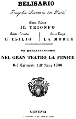 Belisario ist eine Oper (Originalbezeichnung: „Tragedia lirica“) in drei Teilen von Gaetano Donizetti. Das Libretto verfasste Salvadore Cammarano. Die erfolgreiche Uraufführung fand am 4. Februar 1836 im Teatro La Fenice in Venedig statt.