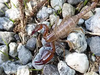 - ↑ Michael E. Soleglad und Victor Fet: High-level systematics and phylogeny of the extant scorpions (Scorpiones: Orthosterni). In: Euscorpius 2003, Nr. 11, S. 102, Online PDF, 37,5 MB.