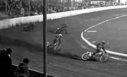 Eine der Aktivitäten, für die Belle Vue ein Synonym wurde, war Motorcycle Speedway-Rennen (damals auch als „Dirt Track Racing“ bezeichnet). Dies begann am 28. Juli 1928, in der vor kurzem errichteten Greyhound Racing Arena. Die Rennen waren sehr beliebt und man entschied, das Leichtathletikfeld von 1887 in ein Speedway Stadium umzugestalten.[104] Am 23. März 1929 wurde es eröffnet. In seiner Zeit war es das größte Speedway Stadium im Land und möglicherweise sogar weltweit. Es wurde zum Heim für die Belle Vue Aces, wurde aber auch für andere Sportarten genutzt (Football, Cricket, Rugby League, Baseball, Stock Car Racing, Tennis).[105] Das Stadium hatte überdachte Sitzplätze für 40.000 Zuschauer.[106] Da die Speedway-Motorräder mit Holz-Alkohol („dope“) betrieben wurden, waren sie im Zweiten Weltkrieg nicht von den Treibstoff-Rationierungen betroffen und die Rennen konnten weitergeführt werden, als ob nichts wäre.[107]