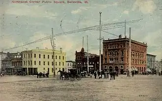 Schon um 1850 war Belleville ein wichtiger Industriestandort – hauptsächlich basierend auf Landwirtschaft und Steinkohlenbergbau, die Einwohnerzahl belief sich damals auf ca. 3000. Die ersten Getreidemühlen waren 1813 und die erste Kohlengrube gleich nach Entdeckung der Kohle 1825 in Betrieb genommen worden. Später kam noch die Stahlindustrie hinzu, wodurch Belleville zu einer Hochburg der amerikanischen Nagel- und Ofenproduktion wurde. Basierend auf Kohlebergbau oder Eisenerzverhüttung entwickelte sich die industrielle Seite der Stadt am Ende des 19. Jahrhunderts.[3] Im Jahr 1856 führte man in der Stadt die Gasbeleuchtung ein und die Stadt wurde außerdem durch den Bau einer Eisenbahnstrecke mit der nur 15 km entfernten Großstadt St. Louis (Missouri) am anderen Ufer des Mississippi River verbunden.
