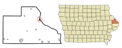 Benachbarte Orte sind Sabula (34,1 km südöstlich), Preston (26,3 km südlich), Andrew (20,7 km südwestlich), La Motte (18,1 km westnordwestlich) und Saint Donatus (16,6 km nordwestlich).
