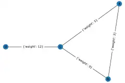e = [('a', 'b', 3), ('b', 'c', 9), ('a', 'c', 5), ('c', 'd', 12)]