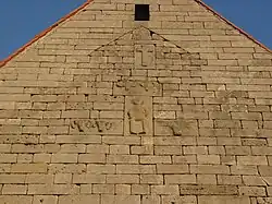 1824 wurden außerdem im Zusammenhang mit der Anlegung des Friedhofs eine Sakristei und ein Ausgang im Norden angelegt. Bei der Verlegung der Orgel 1873 an deren jetzigen Standort wurde im Chor ein Nordfenster eingebaut, die heutige Orgel wurde 1964 gebaut.[1] Das im ursprünglichen Bau vorhandene Sonnenloch ist heute durch den Anbau der Sakristei nur von innen sichtbar. Dieses Sonnenloch sowie die sagenumwobenen Reliefs am Westgiebel sind immer wieder Anziehungspunkte für Laien und Archäologen. Die Reliefs zeigen Kreuz, Mensch, Widderköpfe, Schweinsköpfe und Stierkopf. Eine überzeugende Deutung der Bildinhalte gibt es bis heute nicht. In der Diskussion wird unter anderem auf Verbindungen zu antiker Symbolik und der gesicherten keltischen und römischen Siedlungsepoche verwiesen.