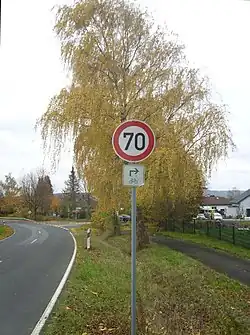 Rechts der Balderscheidweg zum Stadion, von diesem nach links abgehend Am langen Rasen, von diesem am Dorfrand nach links oben abgehend die Sophie-von-Brabant-Straße, von deren oberen Ende nach links die K 41 Richtung Frauenberg.