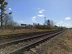 Im Jahre 1915 wurde das damalige Böhmenhöfen Bahnstation[6] an der Preußischen Ostbahn. Heute verlaufen hier zwei Bahnstrecken der Polnischen Staatsbahn (PKP), die Malbork (Marienburg) mit der polnisch-russischen Staatsgrenze verbinden und einst bis Heiligenbeil (heute russisch Mamonowo) bzw. Königsberg (Preußen) (Kaliningrad) führten – als Normalspur- und als Breitspurbahn.