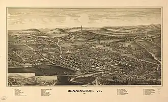 Auf dem Gebiet der Town befinden sich die zwei Villages North Bennington und Old Bennington. Ein weiterer Siedlungsbereich befindet sich Downtown an der Kreuzung der Main Street mit der South Street, dem U.S. Highway 7. Alle Kernbereiche der drei Siedlungsgebiete sind als Historic Districts im National Register of Historic Places gelistet und gehören zu den historisch bedeutenden Districts des Bundesstaates.[5][6][7]
