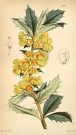 Illustration von Berberis ilicifolia aus Curtis' botanical magazine | ||||||||||||