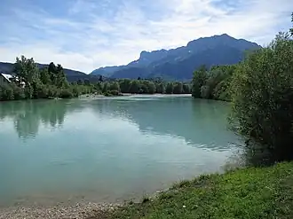 Die Berchtesgadener Ache ist ein selbst etwa 18 km, zusammen mit ihrem längsten Oberlaufstrang etwa 39 km langes Alpengewässer im Südostzipfel Bayerns, das in der Berchtesgadener Talspinne aus der Vereinigung von linker Ramsauer Ache und rechter Königsseer Ache entsteht und mit nordöstlichem bis nördlichen Lauf zur Salzach fließt. In Österreich, wo sie im Land Salzburg nach kurzem Unterlauf nahe der Halleiner Siedlung Rif von links mündet, wird sie mit Einschluss ihres rechten Oberlaufs Königsseeache genannt,[5] auch Alm oder Almbach. Um 1815 wurde der Fluss noch als Albe,[6] laut einer Forschungsgruppe der Universität Salzburg auch als Niedere Albe bezeichnet (vergleiche dazu auch die Bezeichnung der an dem Fluss liegenden Ortschaft Niederalm in Anif sowie Obere Albe für den südlich davon ebenfalls in die Salzach abfließenden Almbach mit Bezug zu Oberalm).[7]