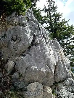 | Alter des Gesteins | Trias (Wettersteinkalk/Ramsaudolomit, Dachsteinkalk) |