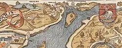Der Plan von Truschet und Hoyau (um 1550)[2] zeigt einen sehr seltsamen Teil der Gegend. Der Dojon, jetzt mit einem Toit poivrière, steht immer noch von Wehrmauern mit hohem Tor umgeben und wird Perci genannt. In Flussmitte ist eine Insel in Form einer Birne zu sehen, deren Spitze nach Paris zeigt; die Insel kann aber nicht nachgewiesen werden. Etwas weiter entfernt entdeckt man das Dorf Conflans[3] mit seiner Kirche und der alten Brücke mit Türmen und der Mündung der Marne in die Seine.
