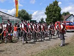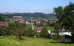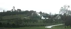 - Berg mit katholischer Kirche, evangelischem Gemeindezentrum, Friedhof, Rathaus und Grundschule