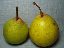 Bergamotte bezeichnet eine Gruppe von rundlichen, meist sehr alten Birnensorten. Die äußere Erscheinungsform dieser Früchte erinnert oftmals mehr an Äpfel als an Birnen.