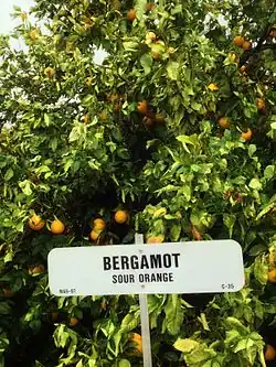 Als Bergamotte (Citrus × limon, Syn.: Citrus bergamia) bezeichnet man eine Gruppe aus der Gattung der Zitruspflanzen (Citrus), die als Hybride aus Süßer Limette (Citrus limetta) und Bitterorange (Citrus × aurantium) oder aus Zitronatzitrone (Citrus medica) und Bitterorange entstanden sein könnten.[1][2] Beschrieben wurde die Pflanze erstmals in der Mitte des 17. Jahrhunderts.[3] Die Frucht wird weniger als Obst verwendet, sondern hauptsächlich wegen der ätherischen Öle angebaut, die in der Bergamottenschale enthalten sind. Das auch als grünes Gold bezeichnete Bergamottöl spielt vor allem in der Parfümindustrie eine Rolle, wird aber auch zum Aromatisieren von Tees (Earl Grey) verwendet.[4]
