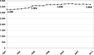 | 2006–2011 | 41,8 | 6 | 44,6 | 7 | 1,9 | 0 | – | – | – | – | 11,7 | 2 | 100 | 15 | 69,5 | ||