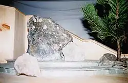 Der kleinere Stein mit einer Höhe von 2,50 Metern trägt das Originalabzeichen der Schweizer Bergführer in Bronze (70 × 55 cm) und darunter eine zweite Bronzetafel (70 × 100 cm), die sowohl die Inschrift