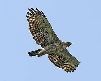 - ↑ a b S. Asai, Y. Yamamoto, S. Yamagishi: Genetic diversity and extent of gene flow in the endangered Japanese population of Hodgson’s hawk-eagle, Spizaetus nipalensis. In: Bird Conservation International. 16, 2006, S. 113–129.