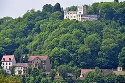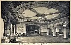 Das Plateau war auf Grund des von dort möglichen Ausblicks einerseits über Bad Kösen bis nach Naumburg und andererseits zur Rudelsburg ein beliebtes Ausflugsziel. In Bad Kösen war 1866 von Teilnehmern der Kriege 1864 und 1866 als Veteranenvereinigung der König Wilhelm's Krieger-Verein gegründet worden. Dieser hatte seinen Stammtisch in einem Raum des Hotels Kurgarten am Walde. Nach der Reichsgründung 1871 beschlossen die Mitglieder des Vereins den Bau eines eigenen Vereinsheims. Sie kauften dazu auf Betreiben des Vorstands Friedrich Wolf vom damaligen Eigentümer das ehemals Borlachsche Grundstück und begannen mit dem Bau eines Hauses. Am 10. Mai 1875 war Richtfest. Beim Bau wurde der um 1750 errichtete[2] und Fähnchen genannte Turm in die Ausgestaltung der Anlage mit einbezogen. Am 28. Januar 1876 erhielt der Verein die kaiserliche Erlaubnis, das Bauwerk Kaiser-Wilhelms-Burg zu nennen. Erster Pächter der im Gebäude untergebrachten Restauration war der Vorstand Wolf, sein Nachfolger der Wirt Andrä, dessen Schwiegervater Gottlieb Wagner, genannt Samiel, die Rudelsburg bewirtschaftete. Ende der 1890er Jahre erlebte die Wilhelmsburg einen besonderen Zulauf von Gästen, weil das damalige Wirtsehepaar Barthel die Häuptlingstochter Killymane aus Transvaal adoptiert hatte,[3] welche in Bad Kösen die Schule besuchte, aber auch als bestaunte "Exotin" in der Gaststätte bediente.