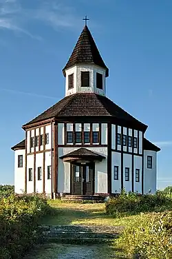 Die in exponierter Lage auf einer Anhöhe im Isergebirge errichtete Bergkirche ist ein oktogonaler Zentralbau, abgeschlossen durch ein schindelgedecktes Zeltdach mit bekrönender Laterne. Im Innern besitzt das Gebäude eine umlaufende Empore, die über zwei seitlich angestellte halbrunde Treppentürme erschlossen ist. Rückwärtig ist eine als Sakristei genutzte halbkreisförmige Apsis angebaut, den Eingang betont ein stützenlos vorkragendes halbrundes Vordach, so dass sich insgesamt ein vierpassähnlicher Grundriss ergibt. Für das Erscheinungsbild des Außenbaus ist die sehr regularisierte Fachwerkkonstruktion bestimmend.