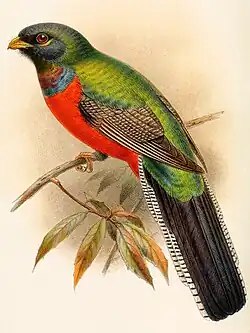 - ↑ a b c N. Collar (2024): Bar-tailed Trogon (Apaloderma vittatum), Version 1.1. In Birds of the World (J. del Hoyo, A. Elliott, J. Sargatal, D. A. Christie, E. de Juana und M. G. Smith, Hrsg.). Cornell Lab of Ornithology, Ithaca, NY, USA. doi: 10.2173/bow.battro1.01.1