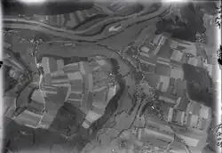 Blick auf die Aare mit verschiedenen Gemeinden, darunter Berken (oberhalb des Waldes rechts von der Bildmitte)