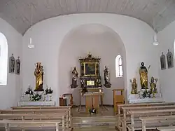 Ein Vorgängerbau wurde 1864 errichtet. Die jetzige katholische Ortskapelle wurde 1911 unter Verwendung des Zwiebelturmes des Vorgängerbaus barockisierend von Maurermeister Wittmann aus Enkering neu errichtet, wobei der alte Chor zur Sakristei umgestaltet wurde. Zur Ausstattung gehören spätgotische Figuren des hl. Wolfgang (Ende des 15. Jahrhunderts) und des hl. Leonhard, die beidseitig des viersäuligen Altars hängen. Auf dem linken Seitenaltar steht eine Muttergottesfigur, auf dem rechten Seitenaltar finden sich eine Figur des hl. Josef und die Büsten der Eichstätter Diözesanheiligen Walburga und Willibald. Die Holzdecke wurde nach 1945 vom Kirchenmaler Rudolf Pfaller mit „Werken der Barmherzigkeit“ gestaltet. In den 1990er Jahren wurde der Hochaltar verändert. Der Ort wird heute seelsorgerlich vom Pfarrer von Enkering versorgt.[2]