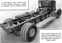 Das Chassis wog 6500 kg. Das zulässige Gesamtgewicht einschließlich 7,5 t Zuladung lag bei 13,5 t. Die Vorderachse hatte eine Tragfähigkeit von 3,5 t und die der Hinterachse von 10 t. Wegen der hohen Hinterachslast wurde eine Drillingsbereifung eingesetzt. Das Fahrzeug war 6299 mm lang und 2286 mm breit. Der Radstand betrug 4699 mm, die Spur vorn 2032 mm und die Spur hinten in der Mitte der Drillingsbereifung 1753 mm. Der Wagen hatte Vollgummireifen der Größe 1030 × 180 vorn und 1030 × 160 hinten auf Rädern aus Stahlguss.[3]