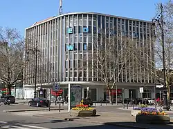 - Das 1971/1972 von der Architektengemeinschaft Hinzpeter, Pingel, Doerr errichtete Kurfürstendamm-Center ist das dominierende Gebäude am westlichen Kurfürstendamm. Es erstreckt sich über einen ganzen Häuserblock ohne einen Bezug auf die traditionelle Bebauung des Boulevards zu nehmen. Es gilt deshalb als eine der Bausünden der 1970er Jahre am Kurfürstendamm, wie das inzwischen abgerissene Ku’damm-Eck (1970–1972) und das Ku’damm-Karree (1970–1975). Nach Auszug der Baumarktkette Bauhaus 2013 konnten die Räume nicht neu vermietet werden, wodurch auch andere Geschäfte schließen mussten.[6]