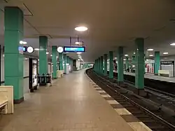 Der Entwurf Richard Brademanns weist trotz der Entstehungszeit in den 1930er Jahren moderne Gestaltungszüge auf. Der unterirdische Bahnhof ist als eine vierschiffige Halle mit flacher Decke ausgeführt. Die quadratischen Stahlstützen sind in drei Reihen, jeweils an den Bahnsteigsmittelachsen, sowie zwischen den inneren Gleisen angeordnet. Die Seitenwände wurden mit weißem Opakglas bekleidet (Plattenformat 53 cm × 32 cm), die Stützen mit grünen Glasplatten. Insgesamt wurde in der Halle rund 4000 m² Glasfläche eingebaut.