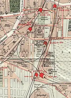 - ↑ Reichsbahndirektion Berlin, Gleisplan des Anhalter Güterbahnhofs einschließlich des Güterbahnhofs Kolonnenstraße (1967), online