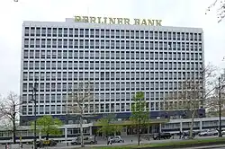 Die Berliner Bank A.-G. wurde am 21. Juni 1950 im damaligen West-Berlin auf Initiative des damaligen Oberbürgermeisters von West-Berlin Ernst Reuter durch Umwandlung des West-Berliner Berliner Stadtkontors gegründet, das 1945 aus den Berliner Filialen der Reichsbank hervorgegangen war.[1] Alleineigentümer bei Gründung war der Magistrat von Berlin bzw. ab 1. September 1950 das Land Berlin.[2] Vorrangige Aufgabe der Berliner Bank war, den Wiederaufbau der Wirtschaft Berlins zu fördern.