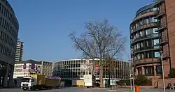 Der Berliner Platz ist umgeben von mehreren runden Gebäuden: