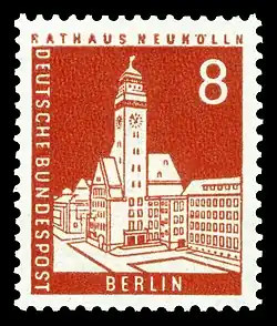 8 | Berliner Stadtbilder (III)[2] Rathaus Neukölln dunkelzinnober; Farbe gegenüber Nr. 143 geändert |