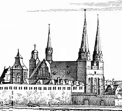 - ↑ wohl eine der in Romanik und Gotik häufigen apotropäischen Darstellungen, die nicht mehr existiert und von der es auch keine Abbildungen gibt