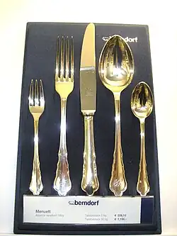 - ↑ Berndorf Besteck & Tafelgeräte GmbH (Seite nicht mehr abrufbar, festgestellt im April 2018. Suche in Webarchiven) Info: Der Link wurde automatisch als defekt markiert. Bitte prüfe den Link gemäß Anleitung und entferne dann diesen Hinweis. abgerufen am 9. März 2009
