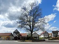 - Ehemalige Gerichtsstätte mit Linde in einem runden Mauerring unweit der evangelischen Kirche.