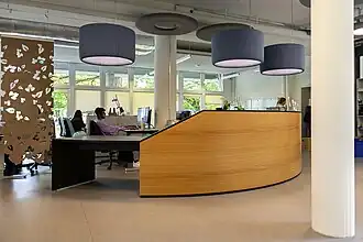 | Empfangsbereich der Berner Fachhochschule Wirtschaft auf dem Campus Marzili in Bern | |