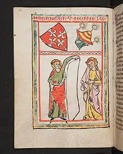 - ↑ Karl Zangemeister: Die Wappen, Helmzierden und Standarten der Großen Heidelberger Liederhandschrift: Manesse-Codex. Görlitz: Starke 1892, S. 11.
