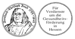 Die Bernhard-Christoph-Faust-Medaille ist eine Auszeichnung des Bundeslandes Hessen, welche in 2. Fassung[1] am 22. Dezember 1993 vom damaligen Ministerpräsidenten Hans Eichel gestiftet wurde. Die Medaille wird dabei als Anerkennung hervorragender Verdienste um die Gesundheitsförderung der hessischen Bevölkerung sowie im verpflichtenden Gedanken an den Begründer der Gesundheitsförderung Bernhard Christoph Faust verliehen.