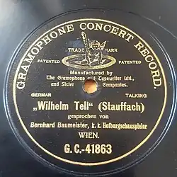 Bernhard Baumeister hinterließ drei Aufnahmen seiner Stimme auf G&T (Wien 1904).