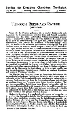 Heinrich Bernhard Rathke (* 20. Januar 1840 in Königsberg i. Pr.; † 14. August 1923 in Bad Reichenhall) war ein deutscher Chemiker.