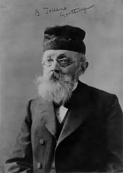 Bernhard Tollens, Sohn eines Kaufmanns, studierte seit 1861 Chemie an der Universität Göttingen, promovierte dort 1864 und war anschließend zunächst als Apotheker, dann als Chemiker in Nürnberg, Bonn, Heidelberg und Paris tätig. Im Jahre 1870 kehrte er nach Göttingen zurück und erhielt eine Anstellung als Assistent in dem von Friedrich Wöhler geleiteten chemischen Universitätslaboratorium. Im gleichen Jahr habilitierte er sich in Göttingen mit „Untersuchungen über die Allyl-Gruppe“[1] 1873 wurde Tollens zum außerordentlichen Professor ernannt und ihm die Direktion des Agrikulturchemischen Laboratoriums der Universität Göttingen übertragen. Hier wirkte er bis zum Jahre 1911. Ab 1884 war er Assessor in der Göttinger Akademie der Wissenschaften.[2]