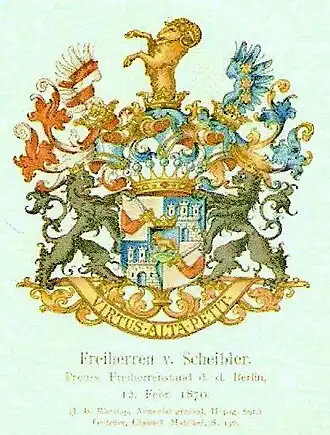 Damit begründete sich nach dem Aussterben der Nachkommenschaft seines Großonkels, des Feldmarschallleutnants Karl Wilhelm Freiherr von Scheibler, ein weiterer Zweig der Familie Scheibler im Freiherrenstand, der bis zum heutigen Tage noch existent ist.