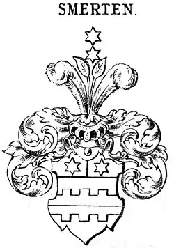 1555 hatte Smerten vom Bürgermeister Diderich Muntz für 3500 Mark ein Steinhaus mit zwei Gärten in Pernau gekauft. Außerdem kaufte er am 9. Mai 1559 dem Ordensmeister Johann Wilhelm von Fürstenberg das sogenannte „Järva-Haus“ an der Ecke Pika- und Pühavaimu-Straße in Pernau ab, das seit 1538 von den Landvogten von Järva genutzt worden war.[7]