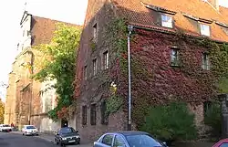 Die Anlage besteht aus Kirche und südlich angrenzendem, um zwei Innenhöfe angelegtem Kloster. Sie gehört außer dem modern gestalteten Ostflügel der Spätgotik an. Die Bauteile bestehen aus Backstein und wurden in den rekonstruierten Bauteilen unter Verwendung von Beton gebaut. Die Kirche hat ein dreischiffiges sechsjochiges basilikales Langhaus mit einschiffigem, dreijochigem, dreiseitig geschlossenem Chor, an den sich im Südosten die zweijochige Sakristei sowie eine dreiseitig geschlossene Kapelle der Muttergottes und des hl. Johannes Capistranus im Südwesten anschließt. Der Chor und das Mittelschiff mit Sterngewölben geschlossen, in den Seitenschiffen, der Kapelle und der Sakristei mit einfachen Kreuzgewölben. Hohe Spitzbogenfenster erhellen den Raum. Der Chor, die Kapelle und die Westfassade der Kirche sind mit Strebepfeilern versehen. Der barocke, verputzte Westgiebel ist von Doppelpilastern flankiert und wird von einer Dreiecksverdachung bekrönt.