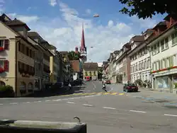 In der Nacht vom 11./12. März 1764 zerstörte der sogenannte Fleckenbrand 86 Wohn- und Gewerbebauten sowie sechs Scheunen. Rund 360 Personen wurden obdachlos. Bereits wenige Tage nach dem Brand wurde der zerstörte Ortskern vermessen und neue Pläne für den Wiederaufbau vorbereitet. Innerhalb von vier Jahren war er neu aufgebaut und blieb bis heute grösstenteils unverändert.[10]