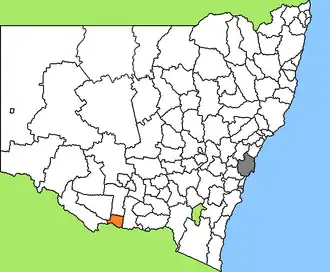 - ↑ Suburb and LGA PercentageArea, Office of Local Government NSW, 1. Oktober 2021